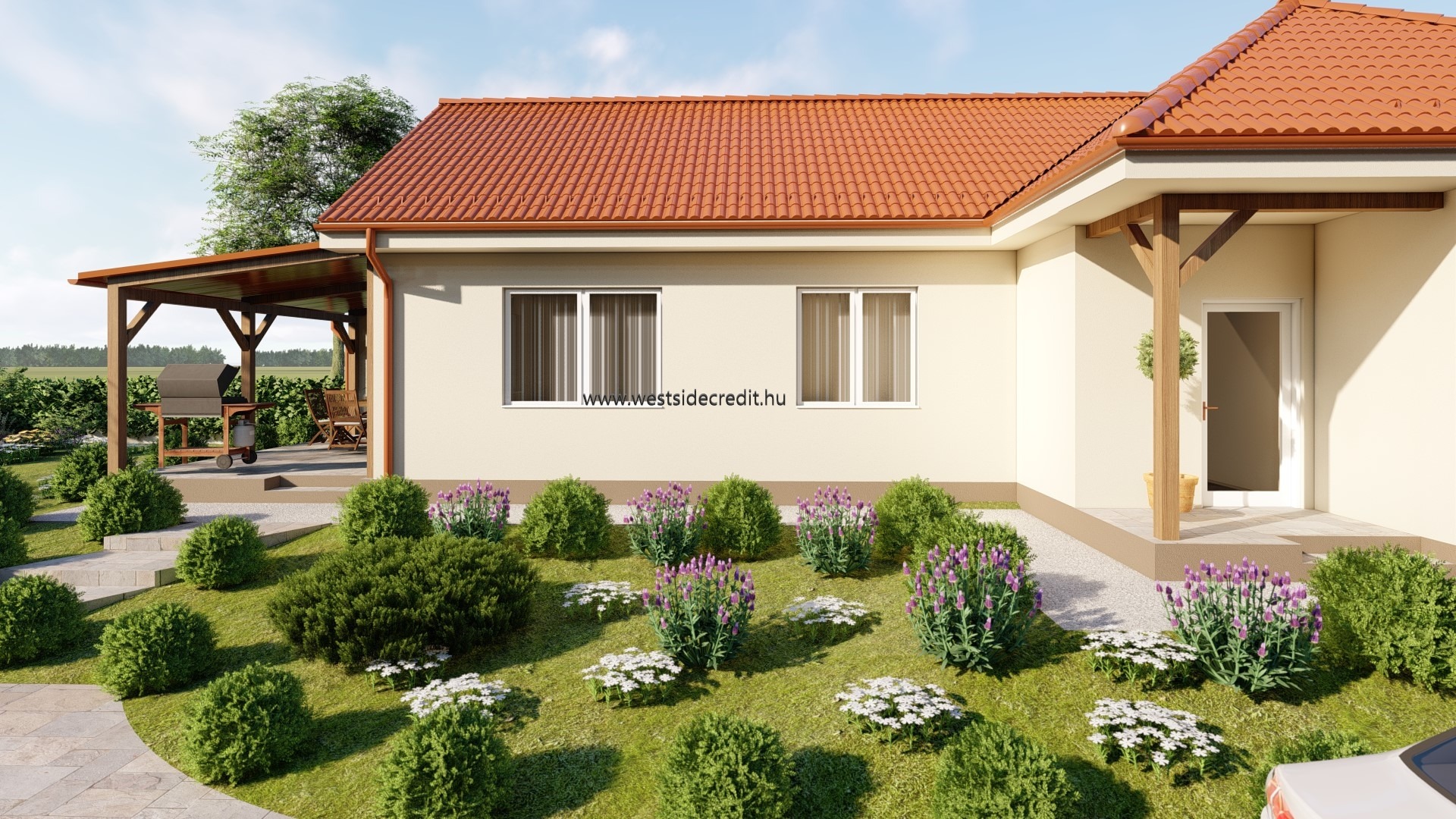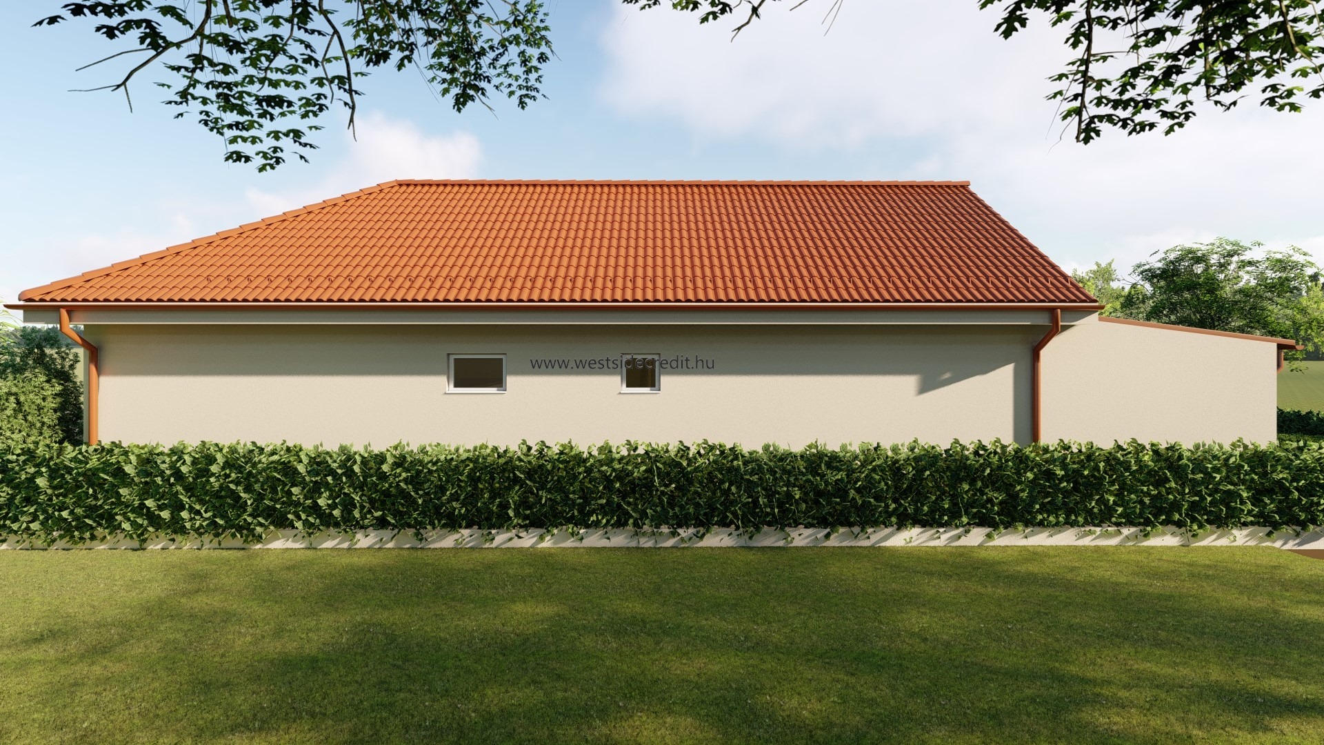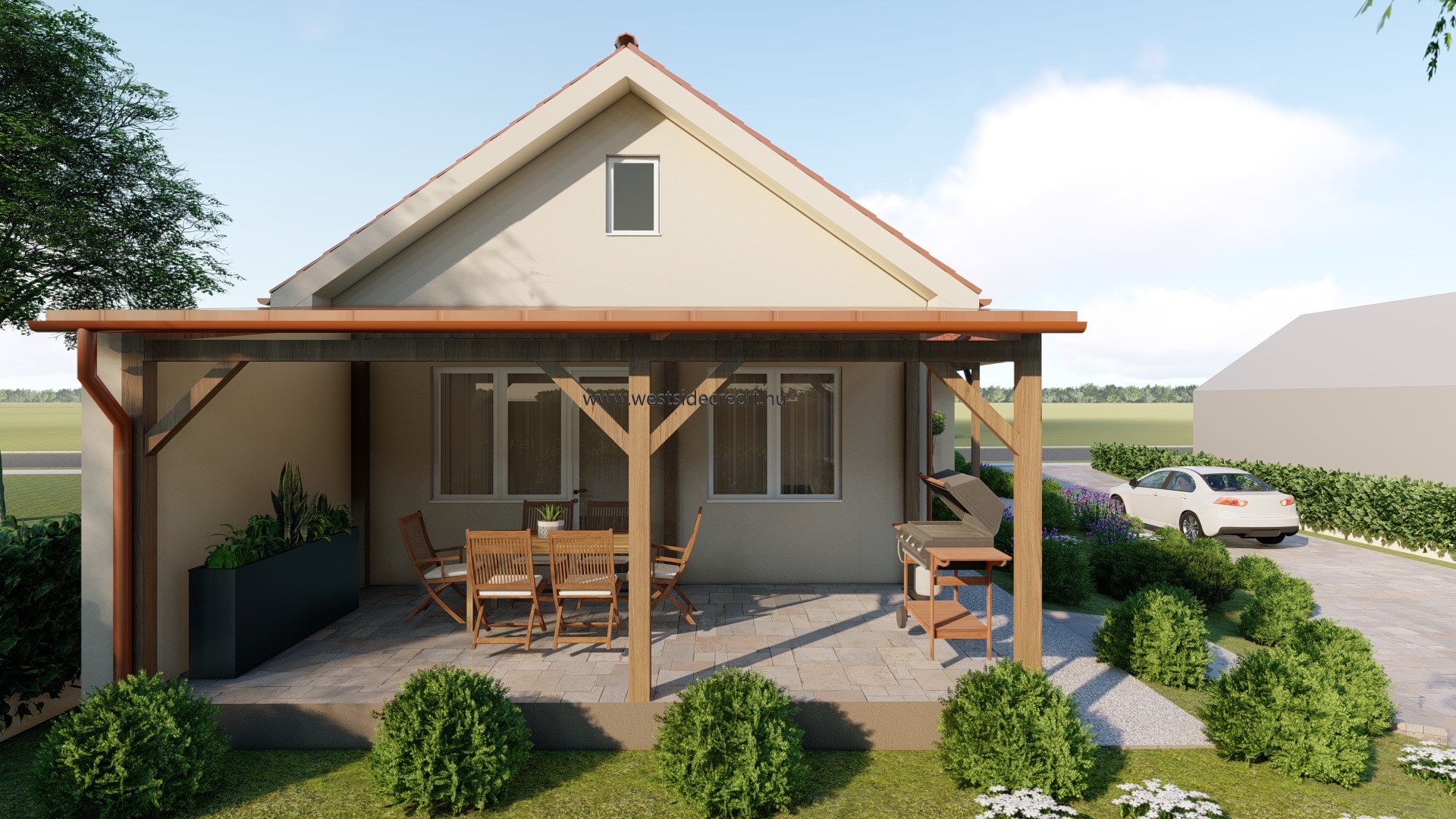 Az osztrák határ közelében megvételre kínálok egy 120.94 m2 hasznos alapterületű nettó 95.27 m2 lakterű könnyűszerkezetes családi házat 540 m2-es telken. Az ingatlan felosztása: fedett belépő (3,69 m2), előtér, közlekedő, 3 hálószoba konyha-étkező-nappali, háztartási helyiség, kamra, WC, fürdőszoba, terasz (21,98 m2). Az ingatlan sávalapra készül, monolit vasbeton aljzattal. A tartószerkezet minősített, szárított hossztoldott faanyagból készül, tűzálló 12,5mm-es gipszrost lap burkolat kerül mindkét oldalra, kapcsos rögzítéssel. A külső falak belső oldalán a vázfa és a gipszrost burkolat közé párazáró fólia kerül, közé kőzetgyapot. A tető rácsostartó tetőszerkezet, cserép fedéssel. Az ingatlan nyílászárói REHAU műanyag szerkezetű 3 rétegű hőszigetelt üvegezéssel készült nyílászárók fehér színben. A ház fűtéséről levegő-víz rendszerű hőszivattyú gondoskodik, padlófűtés hőleadással. Az ingatlanra jellemző a kiváló energetika, modern anyaghasználat, átgondolt és praktikus tervezés. A ház 2026. II. félévi átadással várható. Az ingatlan vételára tartalmazza a kulcsrakész kivitelezést és a telekhányad árát egyaránt. Alkalmas Otthon Start Programra, CSOK Pluszra egyaránt. Amennyiben az eladó ingatlan felkeltette az érdeklődését hívjon a megadott telefonszámon +36709484966 vagy írjon e-mailt a westsidecredit@gmail.com címre. Irodánk díjmentes hitelügyintézésben is rendelkezésére áll.