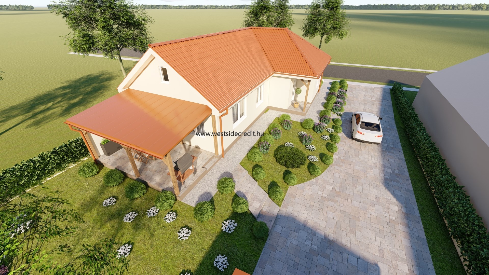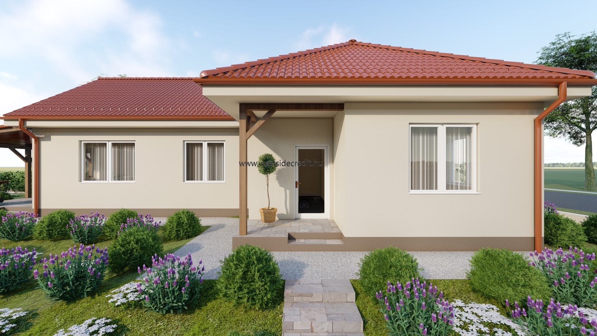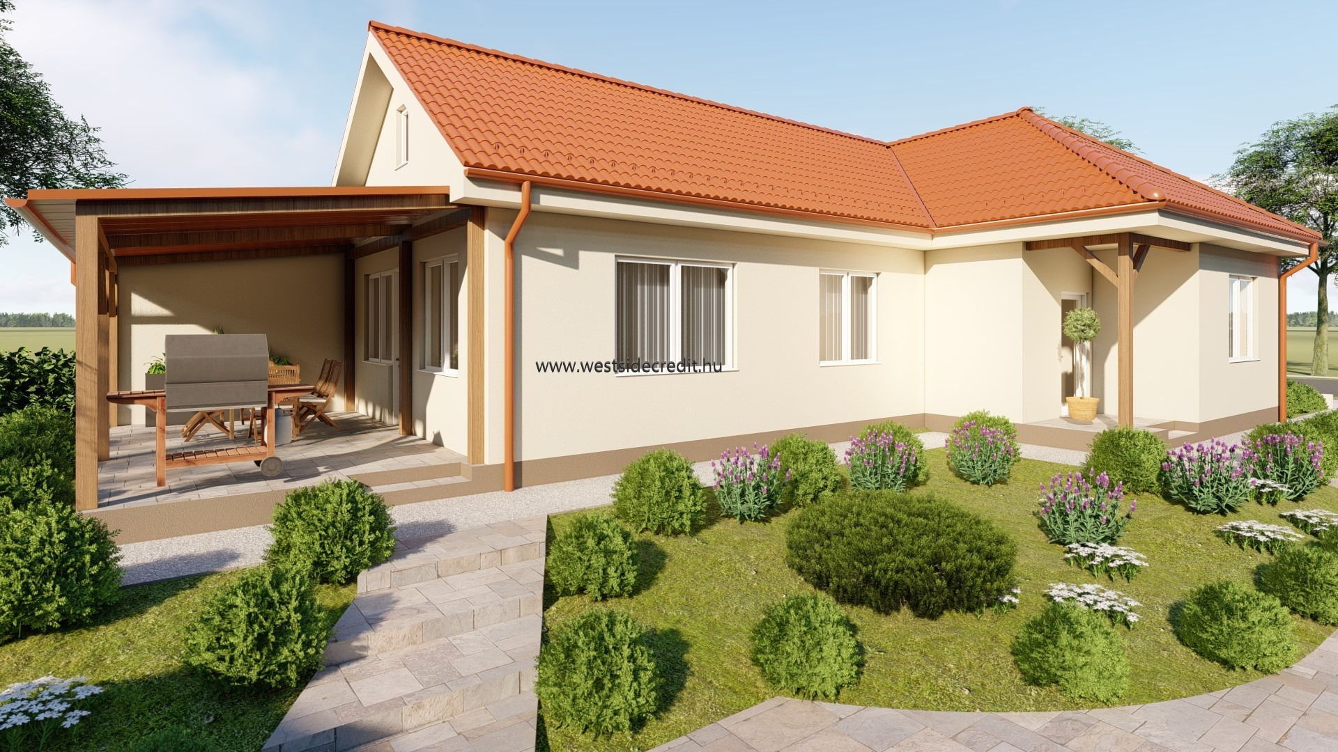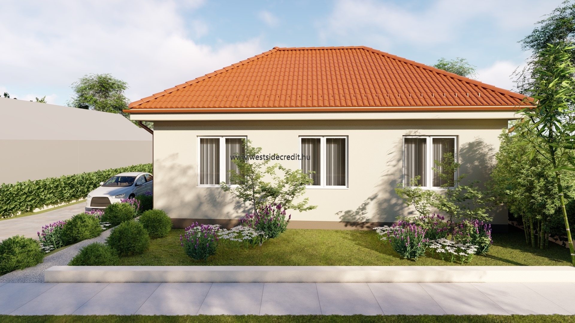 Az osztrák határ közelében megvételre kínálok egy 120.94 m2 hasznos alapterületű nettó 95.27 m2 lakterű könnyűszerkezetes családi házat 540 m2-es telken. Az ingatlan felosztása: fedett belépő (3,69 m2), előtér, közlekedő, 3 hálószoba konyha-étkező-nappali, háztartási helyiség, kamra, WC, fürdőszoba, terasz (21,98 m2). Az ingatlan sávalapra készül, monolit vasbeton aljzattal. A tartószerkezet minősített, szárított hossztoldott faanyagból készül, tűzálló 12,5mm-es gipszrost lap burkolat kerül mindkét oldalra, kapcsos rögzítéssel. A külső falak belső oldalán a vázfa és a gipszrost burkolat közé párazáró fólia kerül, közé kőzetgyapot. A tető rácsostartó tetőszerkezet, cserép fedéssel. Az ingatlan nyílászárói REHAU műanyag szerkezetű 3 rétegű hőszigetelt üvegezéssel készült nyílászárók fehér színben. A ház fűtéséről levegő-víz rendszerű hőszivattyú gondoskodik, padlófűtés hőleadással. Az ingatlanra jellemző a kiváló energetika, modern anyaghasználat, átgondolt és praktikus tervezés. A ház 2026. II. félévi átadással várható. Az ingatlan vételára tartalmazza a kulcsrakész kivitelezést és a telekhányad árát egyaránt. Alkalmas Otthon Start Programra, CSOK Pluszra egyaránt. Amennyiben az eladó ingatlan felkeltette az érdeklődését hívjon a megadott telefonszámon +36709484966 vagy írjon e-mailt a westsidecredit@gmail.com címre. Irodánk díjmentes hitelügyintézésben is rendelkezésére áll.