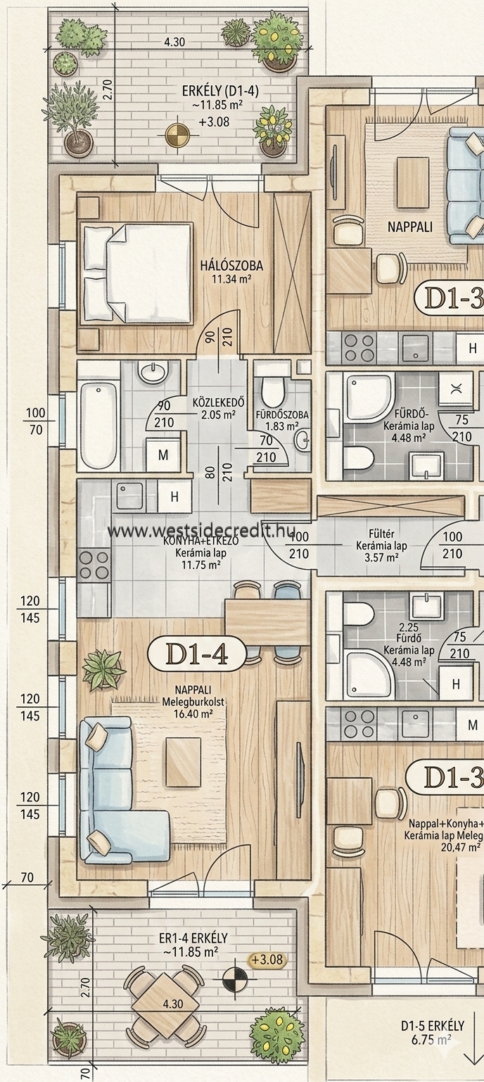 Az osztrák határ közelében megvételre kínálok egy első emeleten lévő nettó 50.45 m2 nagyságú lakást két nagyméretű terasszal (2x 11,85 m2)! Az ingatlan felosztása: előtér, nappali-konyha-étkező, közlekedő, hálószoba, fürdő és WC. Fűtéséről szintenként kombi gázkazán gondoskodik, padlófűtés hőleadással, egyedi mérővel. Nyílászárói műanyag szerkezetűek, 3 rétegű üvegezéssel, redőny előkészítéssel. A vételár tartalmazza a lakás kulcsrakész árát, továbbá a közművek bekötési költségeit és a telekhányadot is! Garázs, parkoló és tároló felár ellenében vásárolható a lakásokhoz! Átadás 2026.03.31.! A lakás megfelel az Otthon Start hitel feltételeinek! Amennyiben az eladó ingatlan felkeltette az érdeklődését hívjon a megadott telefonszámon +36709484966 vagy írjon e-mailt az info@westsidecredit.hu címre. Irodánk díjmentes hitelügyintézésben is rendelkezésre áll.