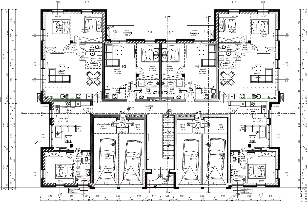 F-5 jelű: 59.69 m2 (nappali-konyha-étkező, 2 hálószoba, közlekedő, fürdő, WC, saját kert 242.59 m2 à Ára: 58.000.000 Ft